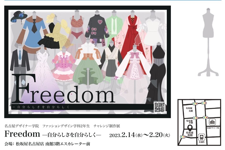 ファッションデザイン学科2年生たちによるチャレンジ制作展です。
