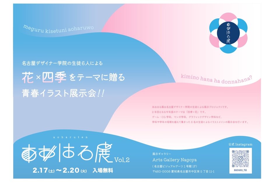名古屋デザイナー学院6名の学生による『花×四季』をテーマに贈る青春イラスト展示会です。