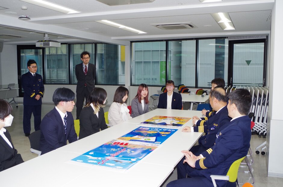 第四管区海上保安本部(主に東海〜中部地方の太平洋、ならびに岐阜県、愛知県、三重県を管轄範囲[1]とする、海上保安庁の管区海上保安本部の一つ)様ご協力のもと、学生たちによる実践。