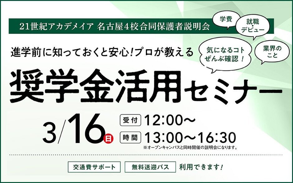また保護者様向けのプロが教える奨学金活用セミナーも同時開催!