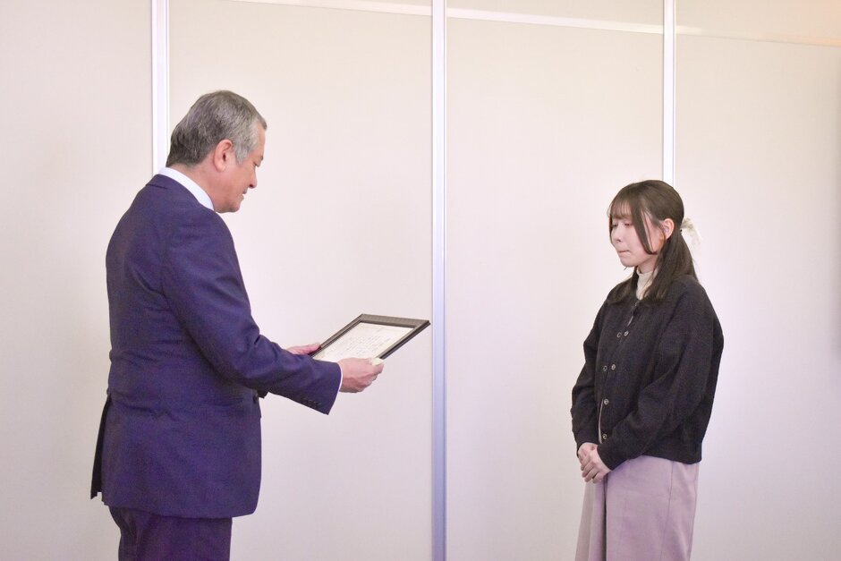 今回コメダ賞を受賞したのはグラフィックデザイン学科1年生・鈴木梨奈さん。
