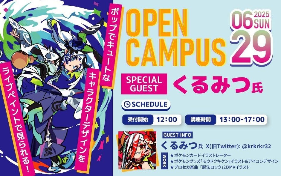 くるみつ氏来校!業界で大活躍中のイラストレーターからポップでキュートなキャラデザを学べるライブペイント開催!
