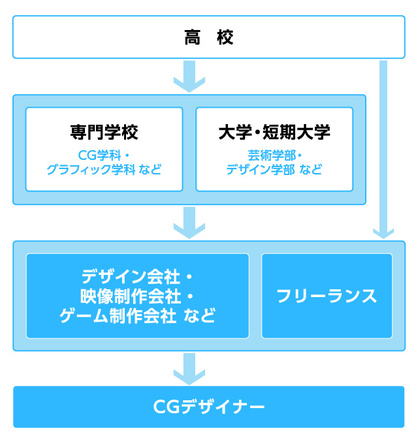 ゲーム会社、VRコンテンツ制作、映画制作、webデザイン会社やIT企業をはじめとしたデジタルマーケティング関連企業、広告代理店や制作会社のデザイン部門で活躍しています。